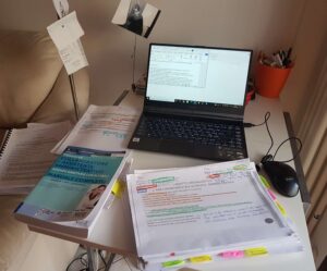 Sul sito dell’Azienda Sanitaria vengono pubblicate le date del concorso al quale mi ero candidata nel 2019. Nessuno se l’aspettava, eravamo alle prese con la pandemia e in piena campagna vaccinale, speravamo che il concorso rimanesse sospeso ancora un po’, invece l’azienda aveva deciso di procedere. Quando l’ho saputo mi è venuto un colpo, avevo meno di 2 mesi per preparare la prova scritta fissata al 5 ottobre e lavoravo 6 giorni su 7. Dove avrei trovato il tempo per studiare? Ho tentennato, ero indecisa se provarci o no, ma siccome non so rinunciare a qualcosa in partenza, ho deciso di tentare. Ho iniziato una corsa contro il tempo durata 6 mesi e conclusa a febbraio 2022 con la prova orale. Sei mesi massacranti con sveglia alle 5, due ore di studio prima di andare al lavoro, la sera ancora studio e il fine settimana studio. È stata dura, dura, davvero dura.